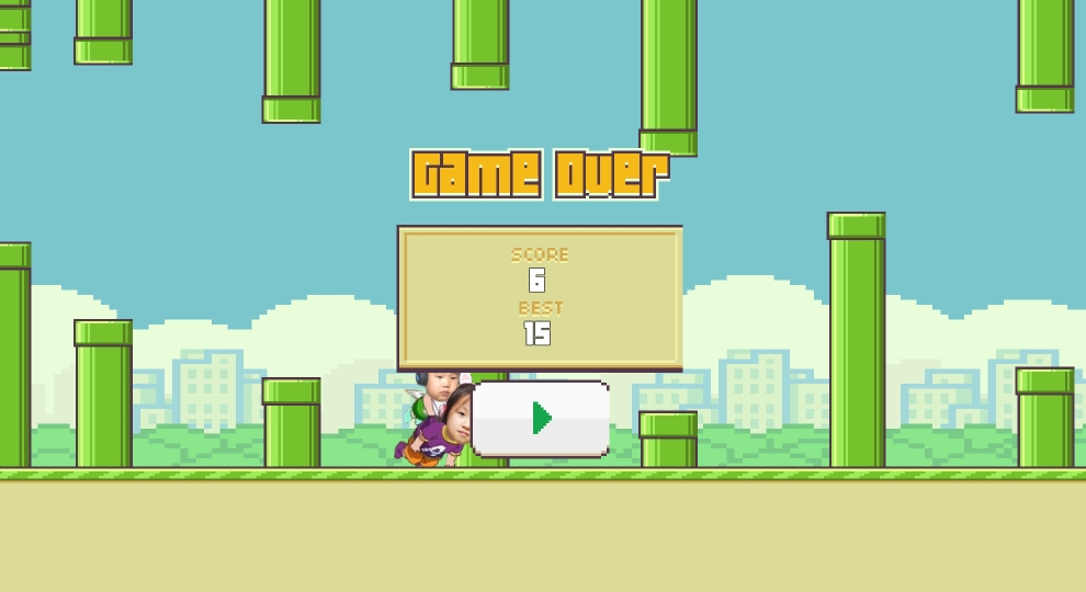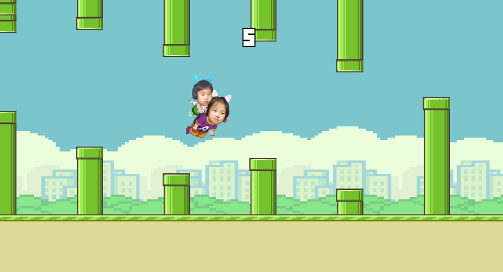 플래피버드 짭게임인데 새 대신 제 아이들을 주인공으로 하였습니다.