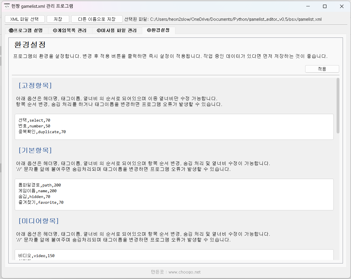 즉 게임을 추가하거나 편집하기 위해선 xml파일의 편집이 필수적인데, 이 xml파일을 직접 수정하는것이 생각보다 까다롭다는게 큰 문제입니다.