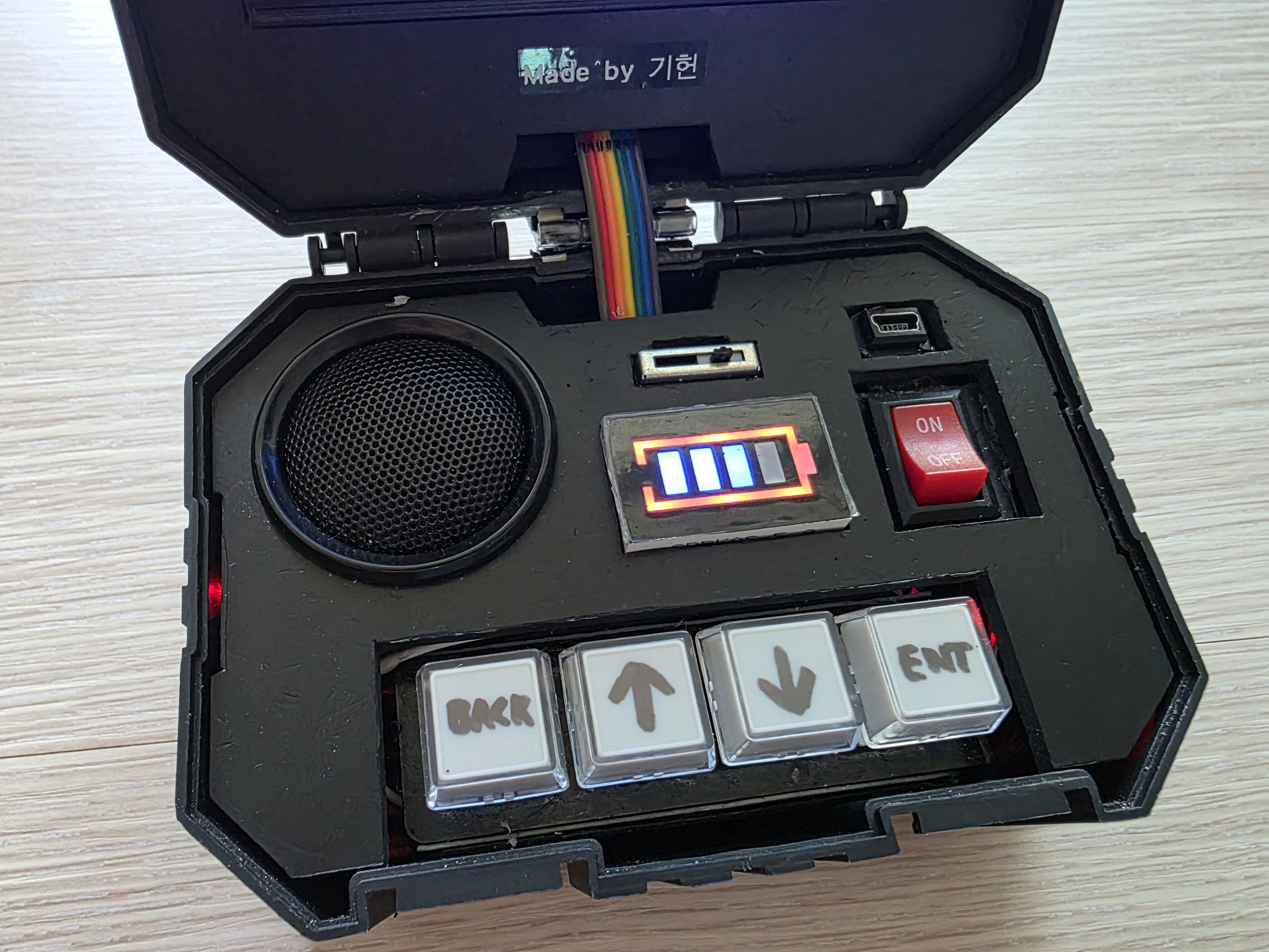 - 사운드: LM386 앰프 + 스피커 (청각적 피드백), 가변저항 노브를 통한 볼륨조절.